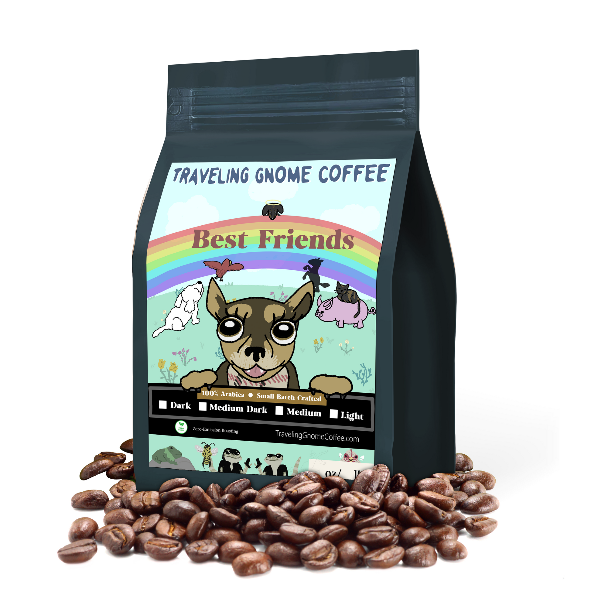 Our Best FriendsĀ Blend brings together the finest beans from Central and South America, roasted to gnome-perfection for a smooth, heart-hugging cup. Itās the kind of brew that makes tail wags faster, purrs louder, and gnomes dance around morning campfires.