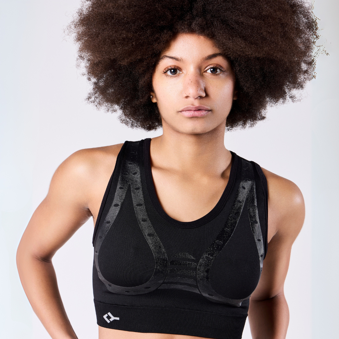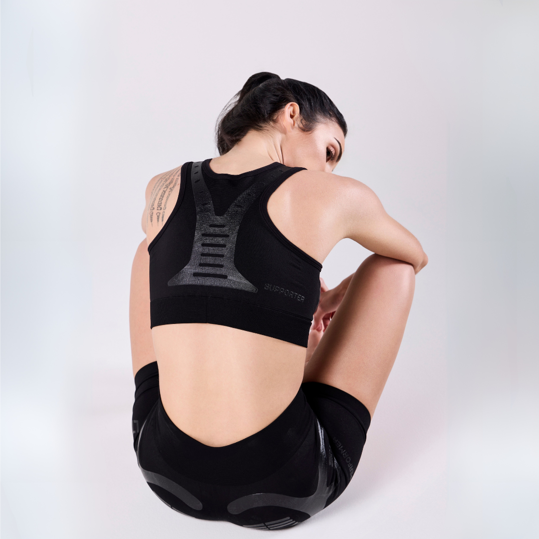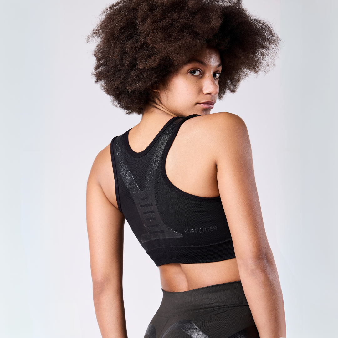 SUPPORTER is the first biomechanical bra designed to support the breast and reduce fatigue in the pectoral and back muscles during physical activity and daily life.