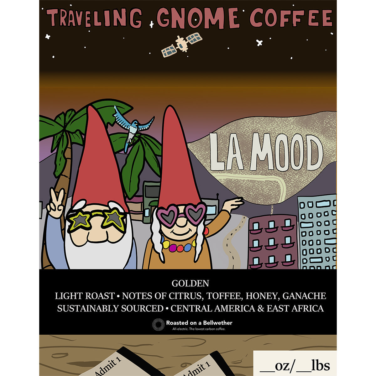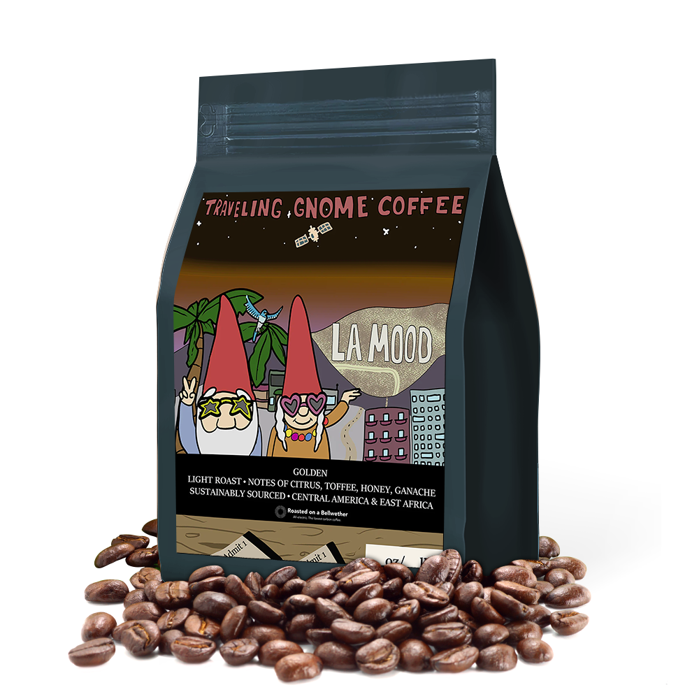Inspired by our visit to Los Angeles, wandering Hollywood, and the electric joy of the Harry Styles' Love On Tour concert, Golden Blend captures that glowing moment when everything feels warm, vibrant, and unforgettable. This is the coffee we keep daydreaming about… and honestly, we’re always spinning out waiting for the next cup. At Traveling Gnome, this coffee is never out.