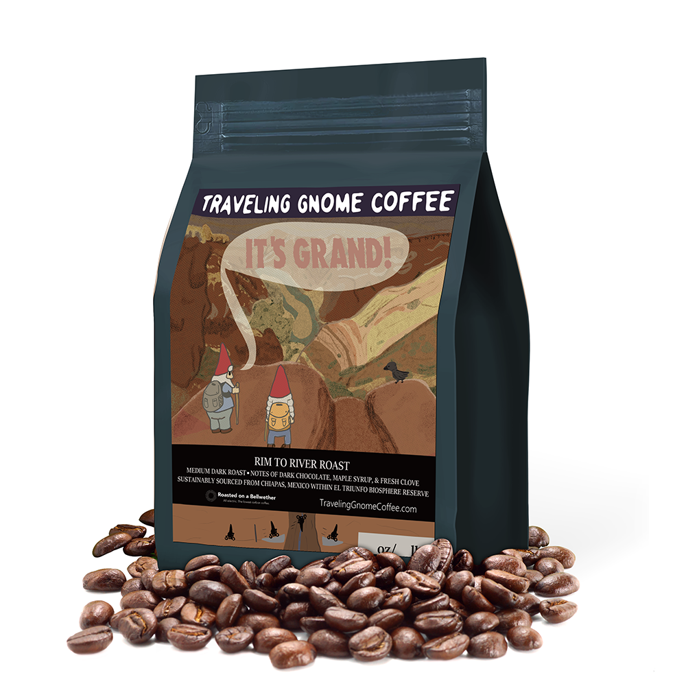 Meet Rim to River, a Grand Canyon inspired single-origin specialty coffee from the high-elevation mountains of Chiapas, Mexico. Smooth, balanced, canyon-tested, and roasted to highlight rich flavor notes of dark chocolate, toasted nuts, vanilla, caramel, and warm nutmeg.